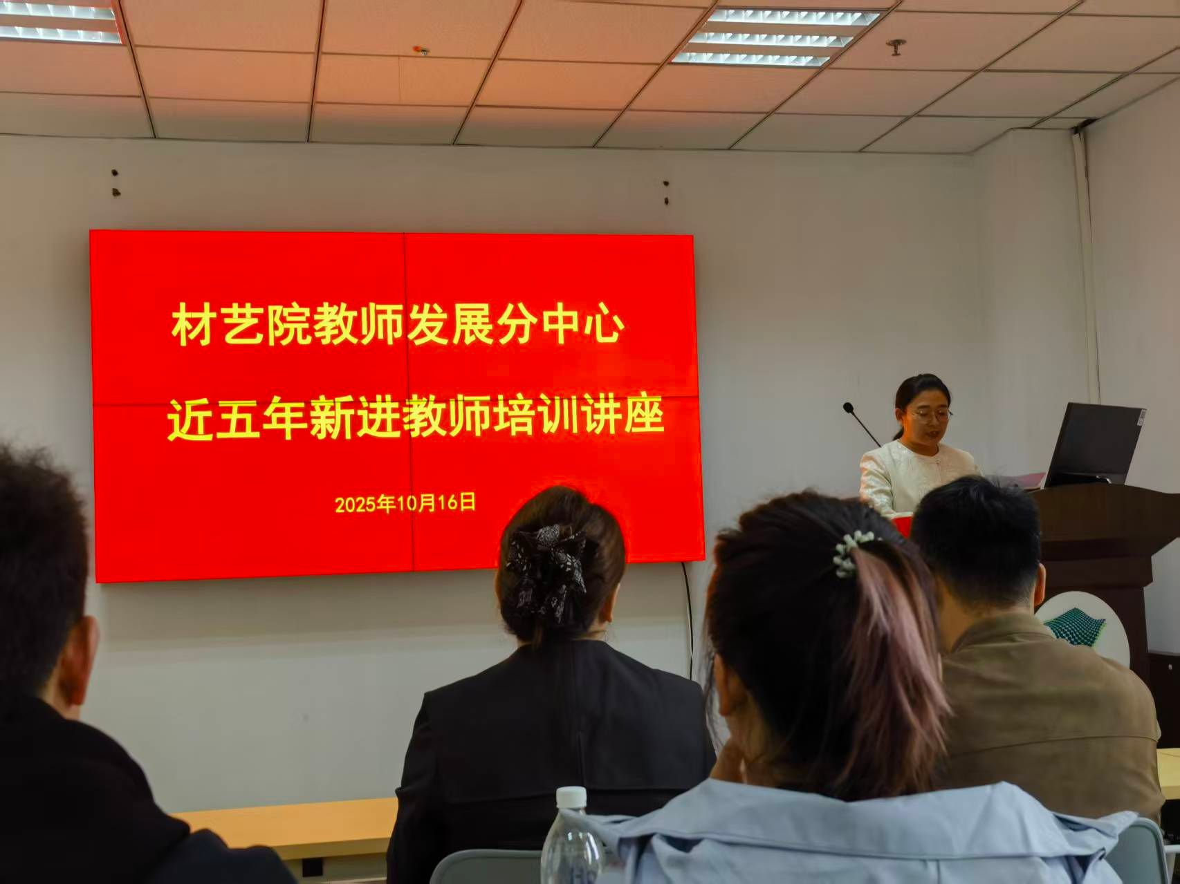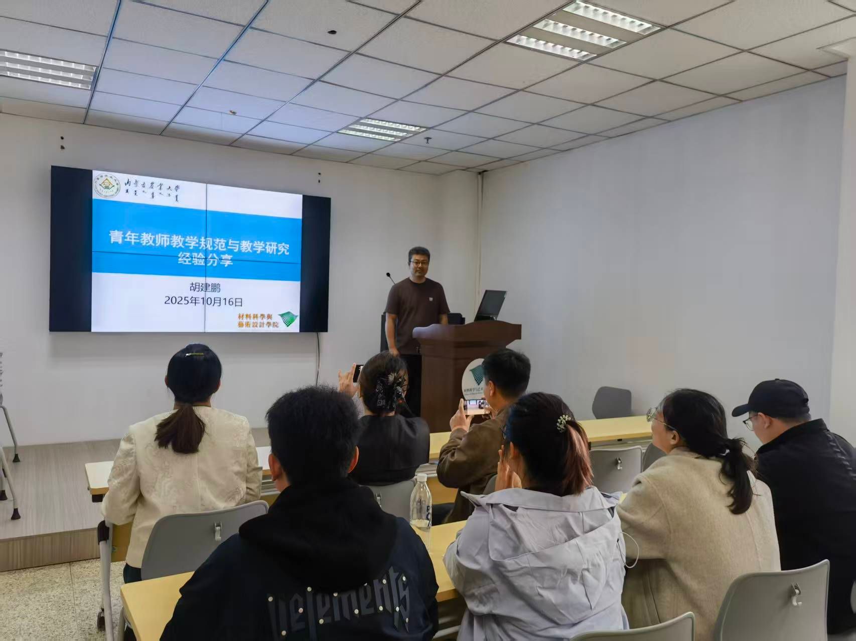 加强教师队伍建设,促进青年教师成长,提升教学水平和教学研究能力,2025年10月16日下午,材料科学与艺术设计学院教师发展分中心在731报告厅举办了近五年新进教师专题培训讲座活动,木结构建筑与材料教研室主任胡建鹏副教授应邀作专题讲座,13名新进教师参会,讲座由学院副院长张燕副教授主持。