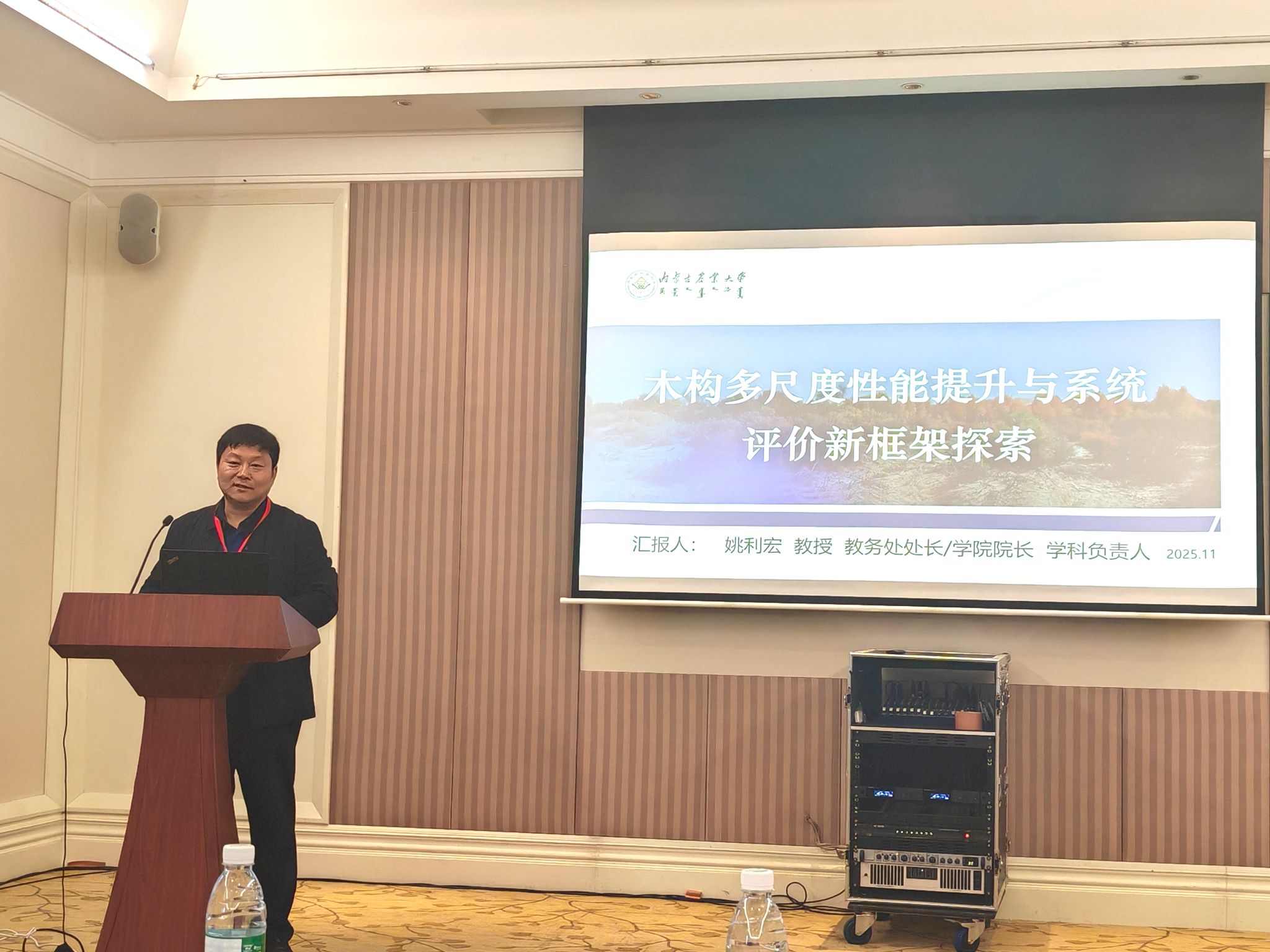 姚利宏院长的报告系统介绍了我院林业工程学科在中式典型斗拱木构件静力学性能分析、井干式木结构沉降防控以及木结构建筑碳排放分析等领域的研究成果;此外,还就我院的办学历史、学科特色以及木结构建筑与材料本科专业建设情况为与会代表做了简要介绍。报告引发了与会学者们的广泛关注,凸显了我院在木结构研究领域的独特优势,提升了学校、学科、专业的社会影响力。