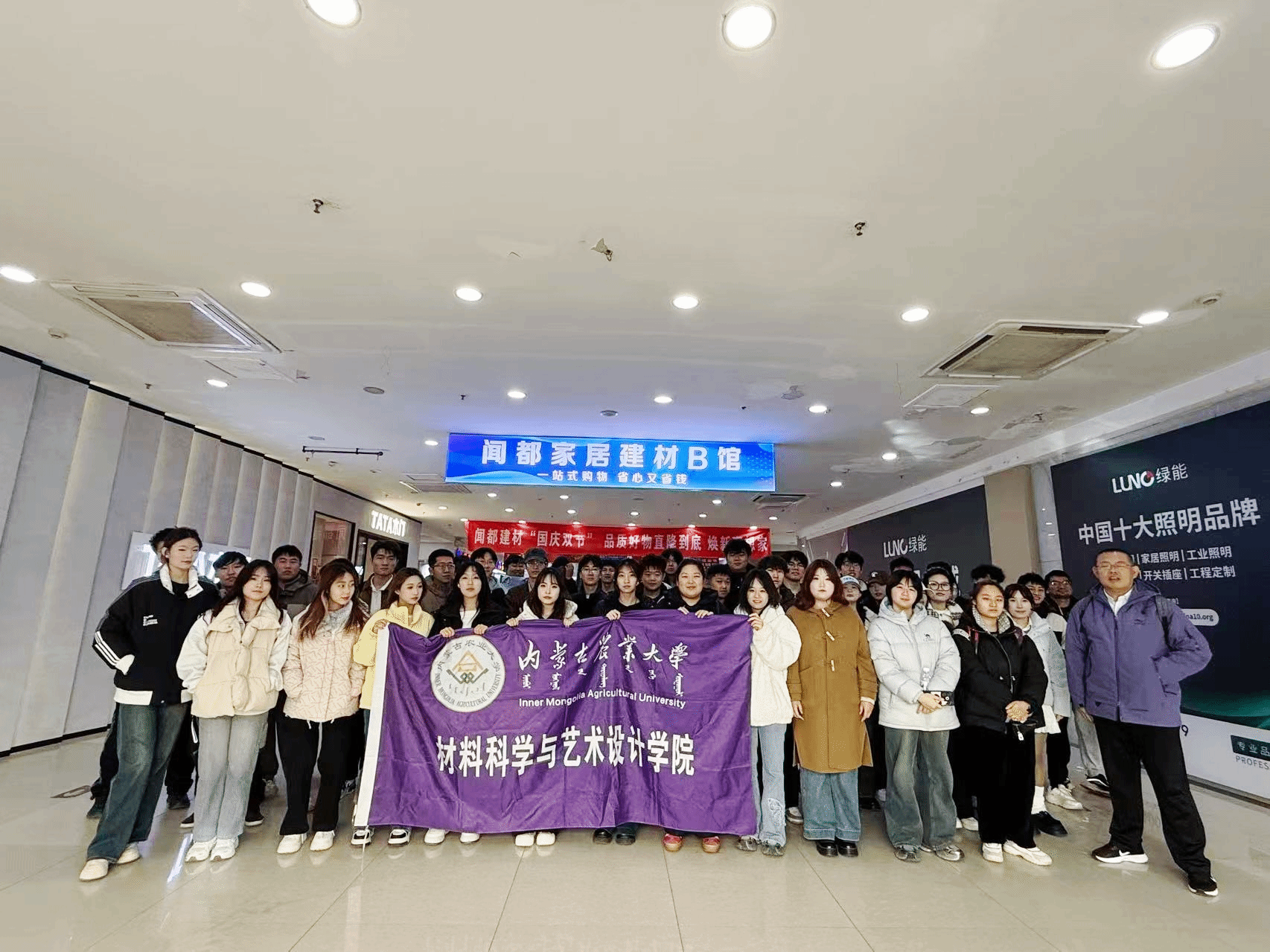11月9日师生们来到了闻都家居建材市场,它是呼和浩特市规模领先的综合性建材家居交易平台,共有 A、B、C、D四大核心场馆,形成“基础建材采购+成品家具展示+定制家居服务+软装配套整合”的全产业链布局。其中C馆集中展示实木家具、软床、轻奢家居等成品品类,涵盖多元设计风格;实现从材料供应到设计落地的全流程覆盖。