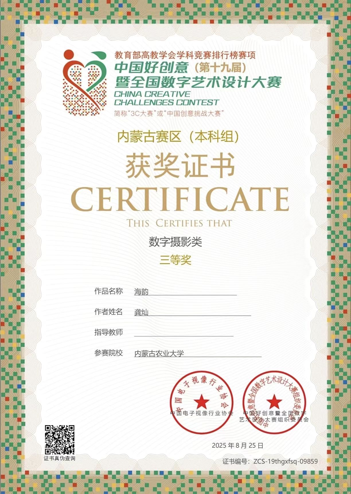 内蒙古农业大学材料科学与艺术设计学院师生在第十九届中国好创意大赛国赛、省赛中再创佳绩