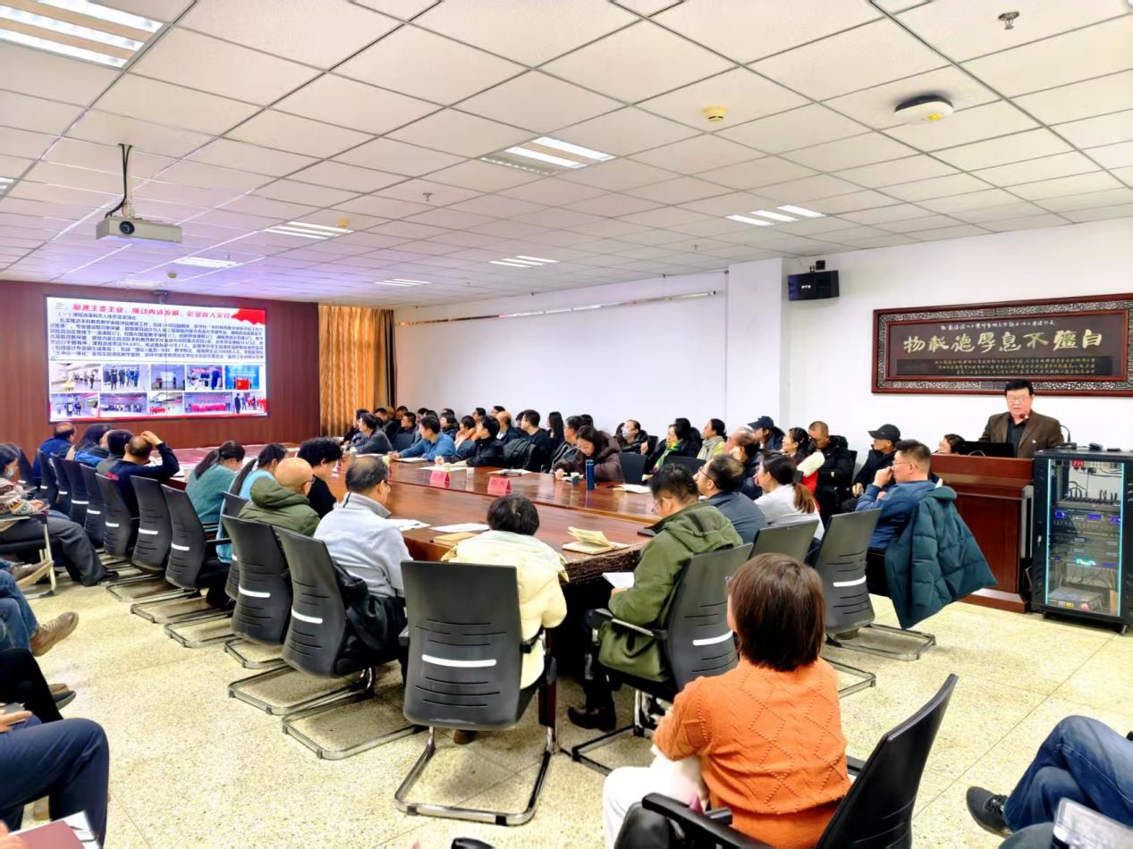 入职宣誓仪式结束后,学院党委书记屈丰富作学院2025年度工作总结报告,报告强化政治引领、夯实组织基础、聚焦主责主业等方面,系统梳理了一年来学院在高质量发展道路上取得的显著成效与宝贵经验,深刻分析了存在的问题不足及面临的机遇与挑战,对全体教职工的辛勤付出表示衷心感谢。